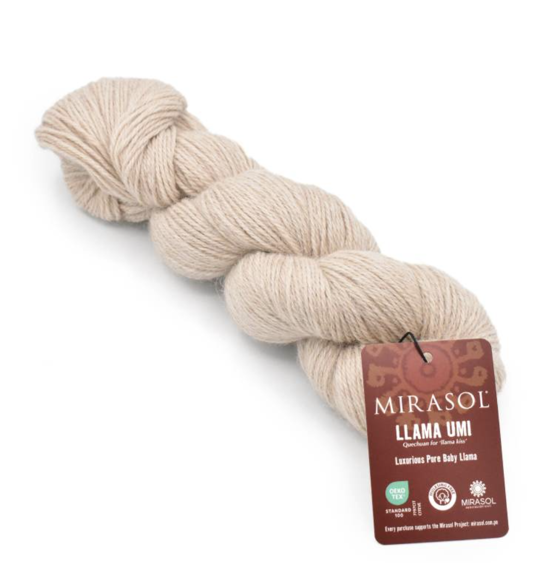 Mirasol Llama Umi is a refined fine-weight yarn spun from 100% plush Baby Llama fibres, delivering breathtaking softness and warmth. Taking its name from the Quechan phrase for “Llama Kiss”, each generous 100 g skein offers 300m—perfect for lightweight shawls, delicate tops, or cozy accessories. Llama Umi is especially unique because of its natural colouring. This yarn is dye-free! Knitting at a lace-like gauge of 23–26 stitches per 4″, it blooms into a fabric that’s both airy and elegant. This yarn is crafted for makers who cherish softness and simplicity, grounded in nature’s rich and rustic hues.