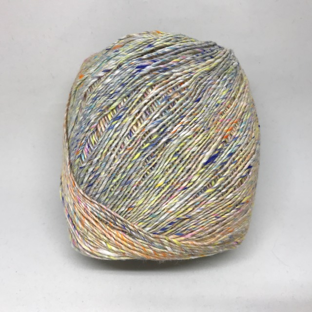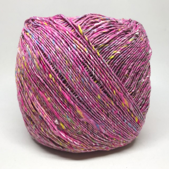 Kakigori (Japanese for “Shaved Ice Dessert”) is one of the very few Noro yarns that contains no animal fibre so it’s a great choice for those who have allergies to wool/mohair. This will make a lovely summer “T” or a cozy lightweight winter top.